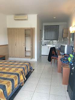 Zimmer des DZ-Bungalow +1; hinten links Bad