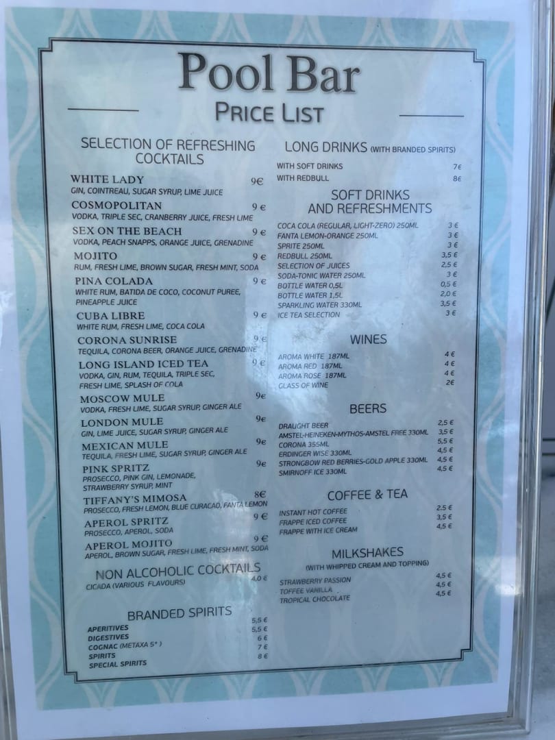 Preisliste Getränke nicht all inklusive