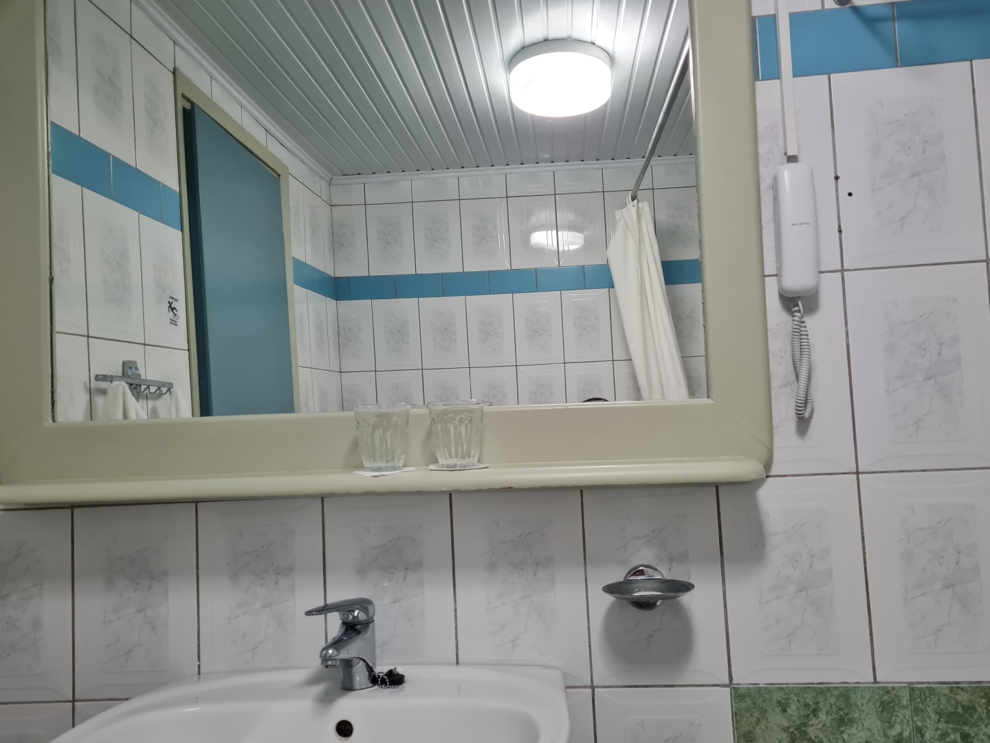 Im Bad keine einzige Steckdose dafür aber ein unnützes Telefon .