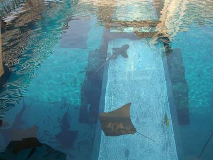 Haifischbecken vor der Pyramidenrutsche The Ziggurat