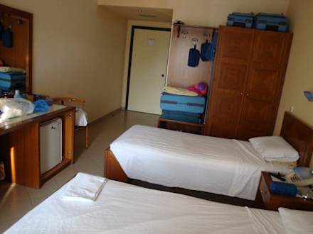 Unser Zimmer mit kleinem Schrank für 3 Personen