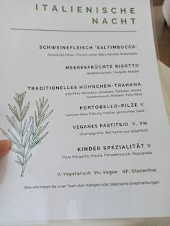 Speisekarte italienischen Nacht im Buffetrestaurant