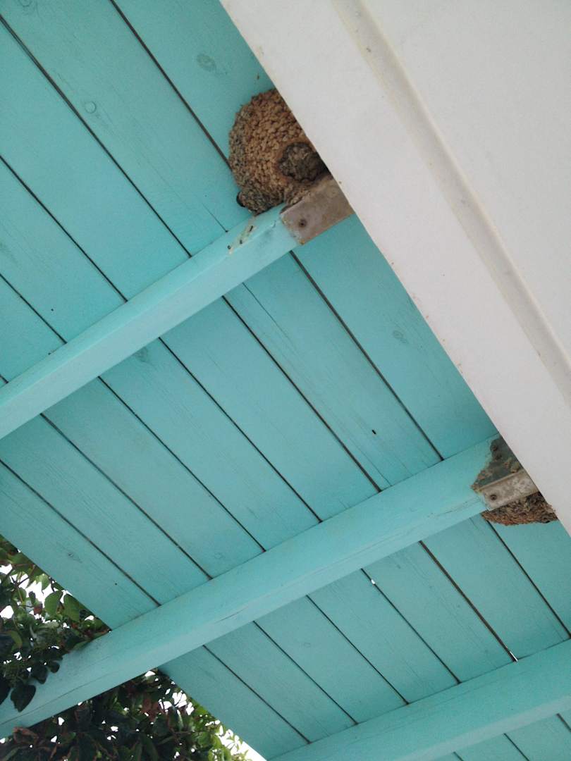 Vogelnester an der Balkondecke