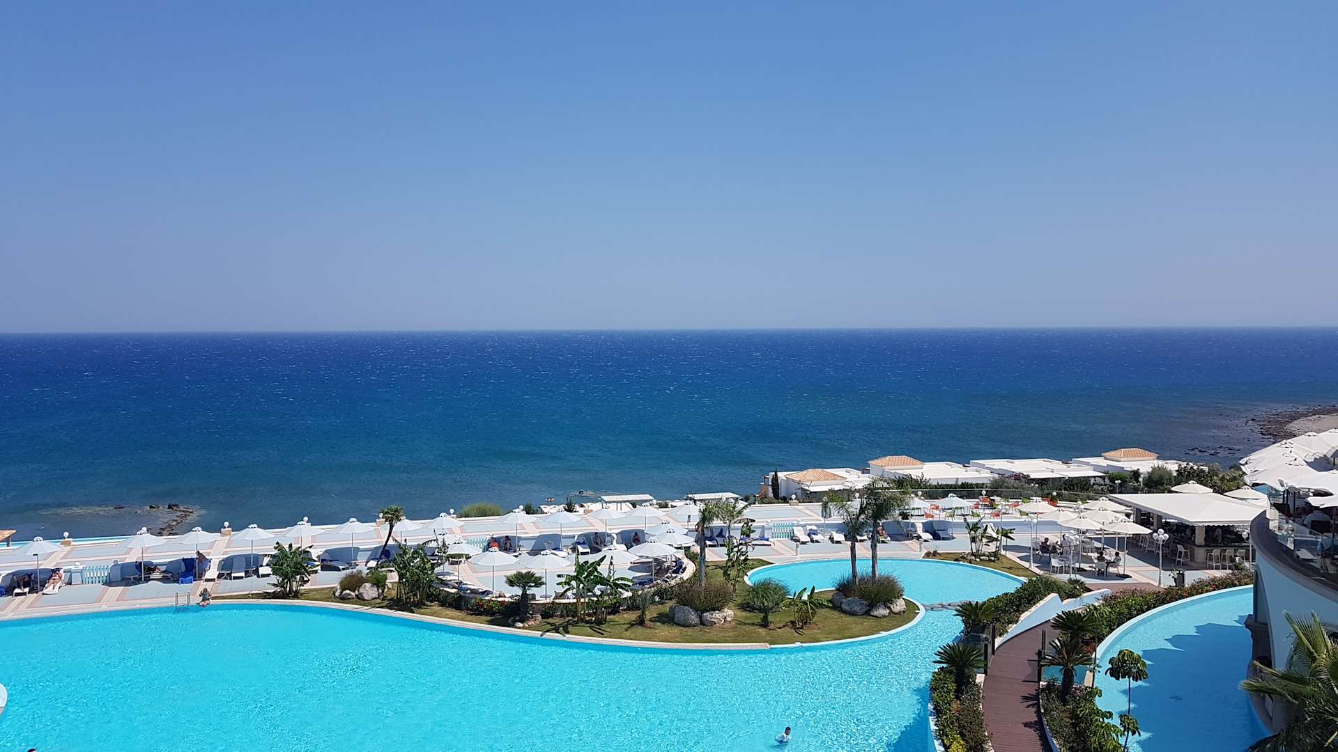 Hotelanlage und Blick aufs Meer