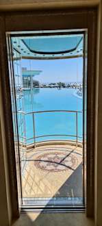 verglaste und von außen beleuchtete Fahrstühle im Haupthaus