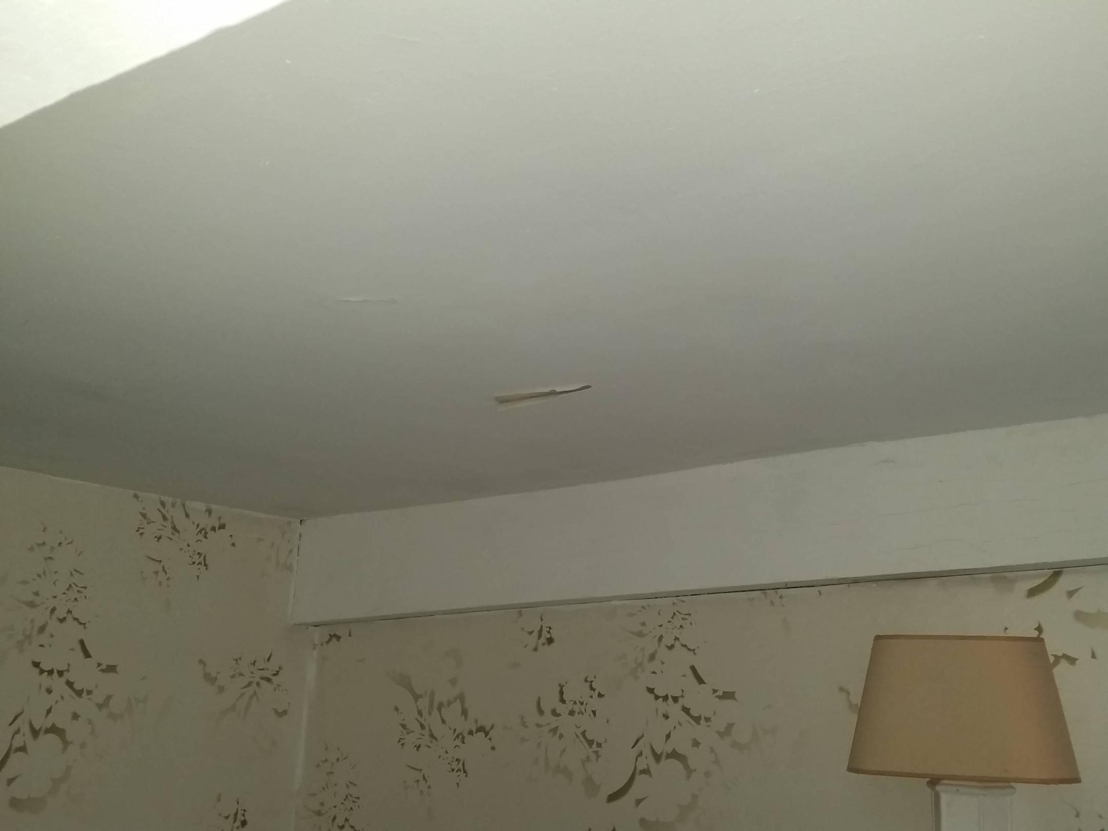 Putz fällt von der decke aufs Bett