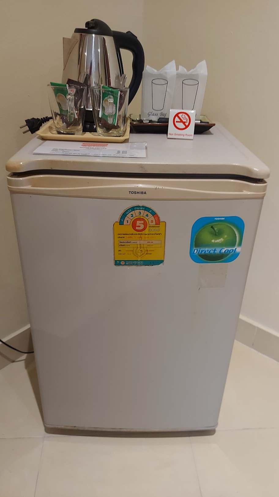 Vergilbter Kühlschrank, den man gern NICHT benutzen soll.