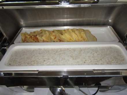 Warme Pfannkuchen und "Haferschleim". Das Haferzeug war nicht so mein Fall, wurde aber von anderen Gästen gleich reihenweise ausgelöffelt.