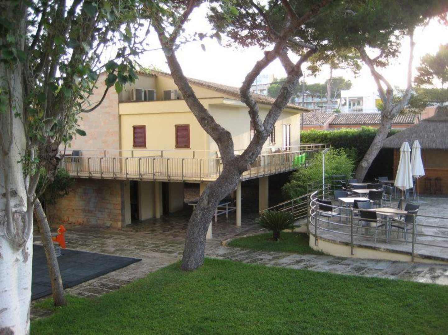 NebengebäudeNebengebäude mit Unterkunft, Außentoiletten, Tischtennis und rechts Poolterasse an der Poolbar
