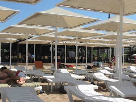 Strand mit Strandbarauch an der Strandbar war immer ein Platz zu bekommen.Strandliegen sind ausreichend vorhanden.