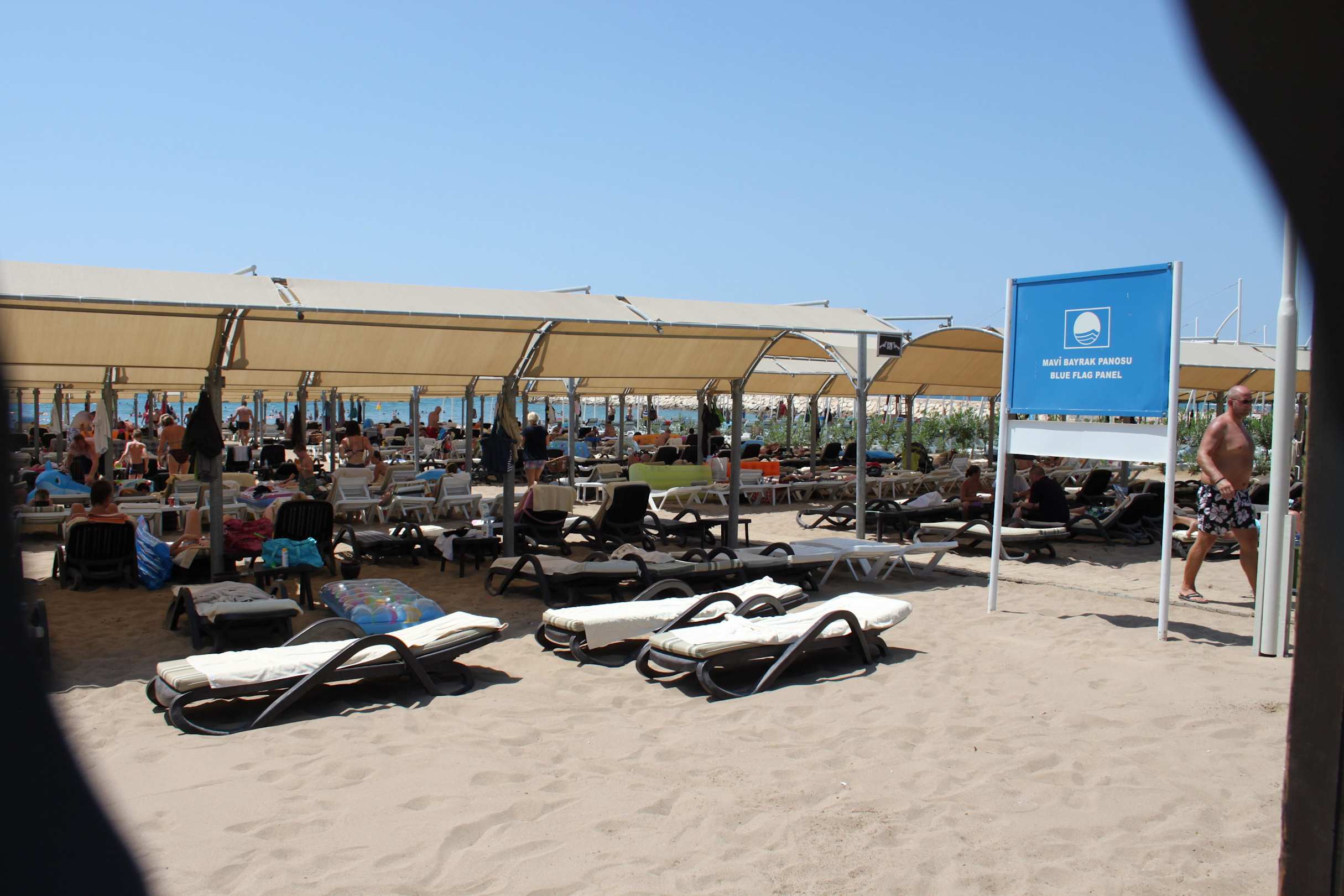 Überdachte Liegen am Strand