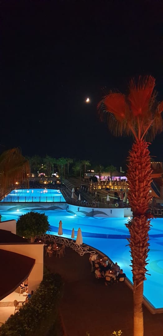 Blick auf die sehr schöne Poollandschaft am Abend