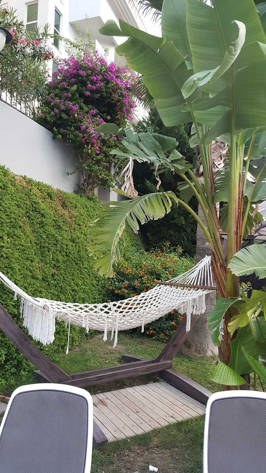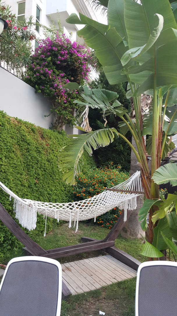 Hängematten waren auch am Poolbereich.