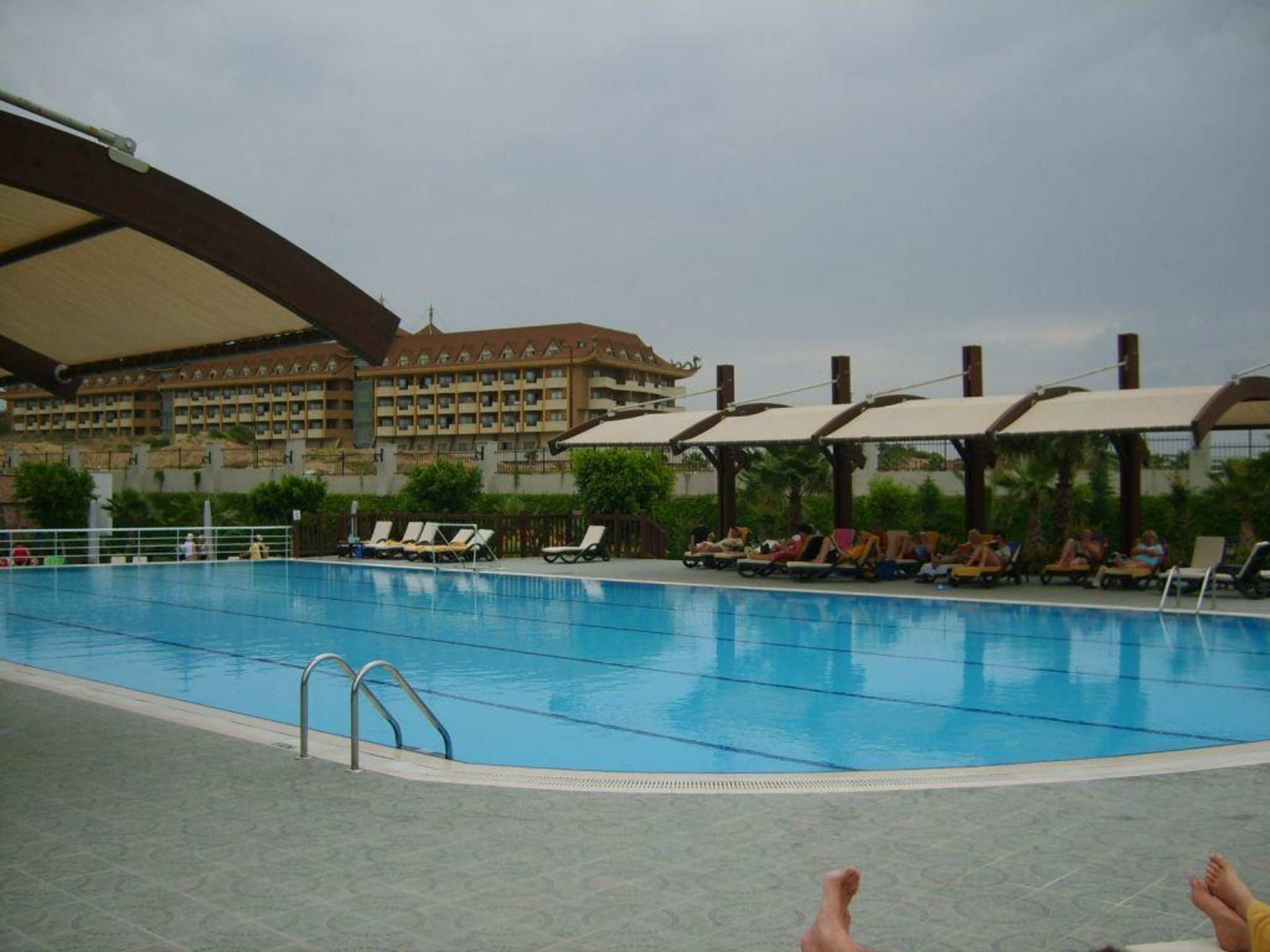 Komplet mit Sonnensegel. Meistens werden dort die Pool spiele gemacht.