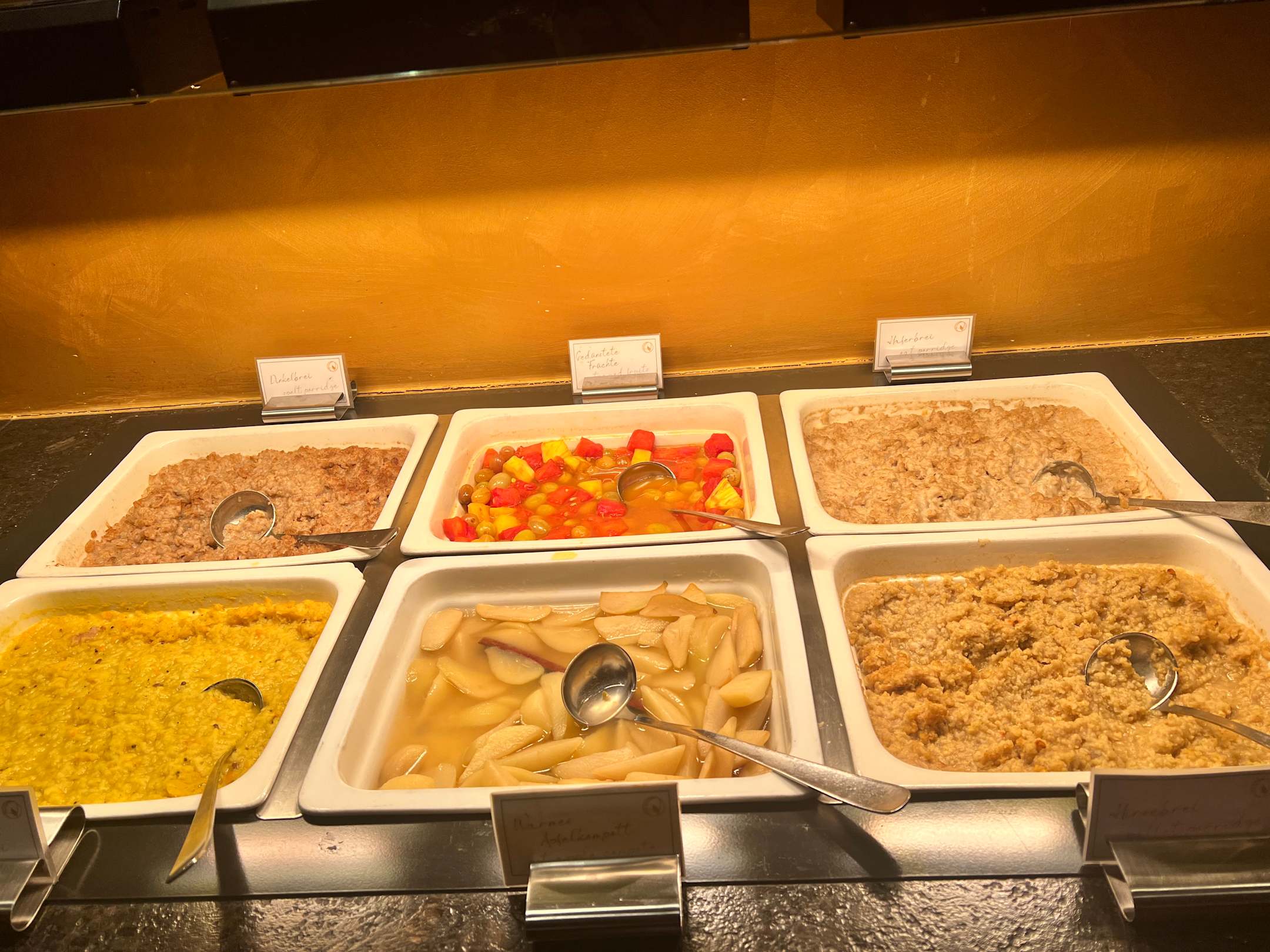 Täglich gleiches Frühstück, steht stundenlang im Wärmebehälter