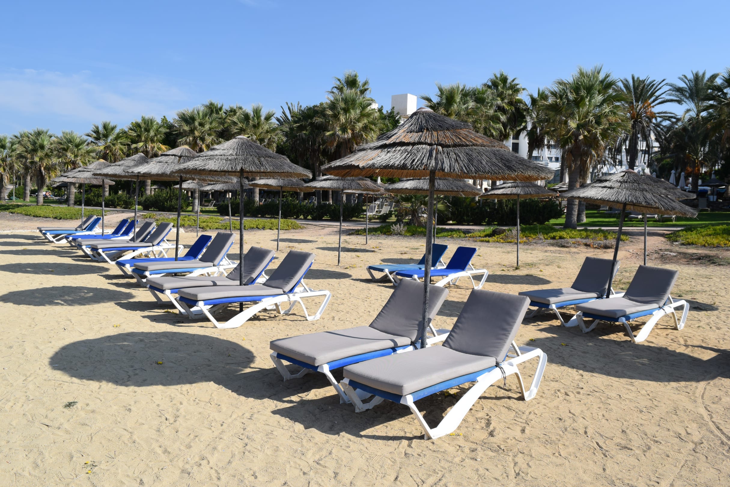 StrandKostenlos nutzbare Liegen am Hotelstrand