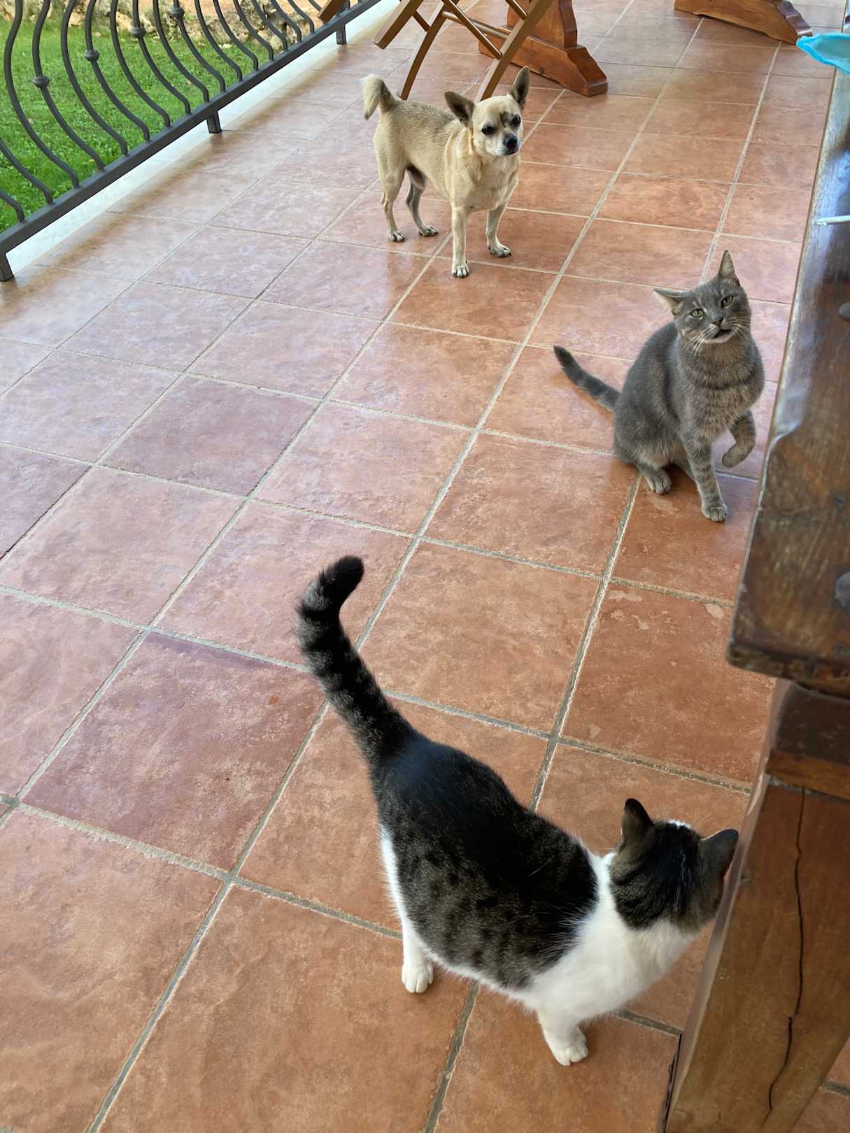 Gesellschaft beim Frühstück auf der Terrasse