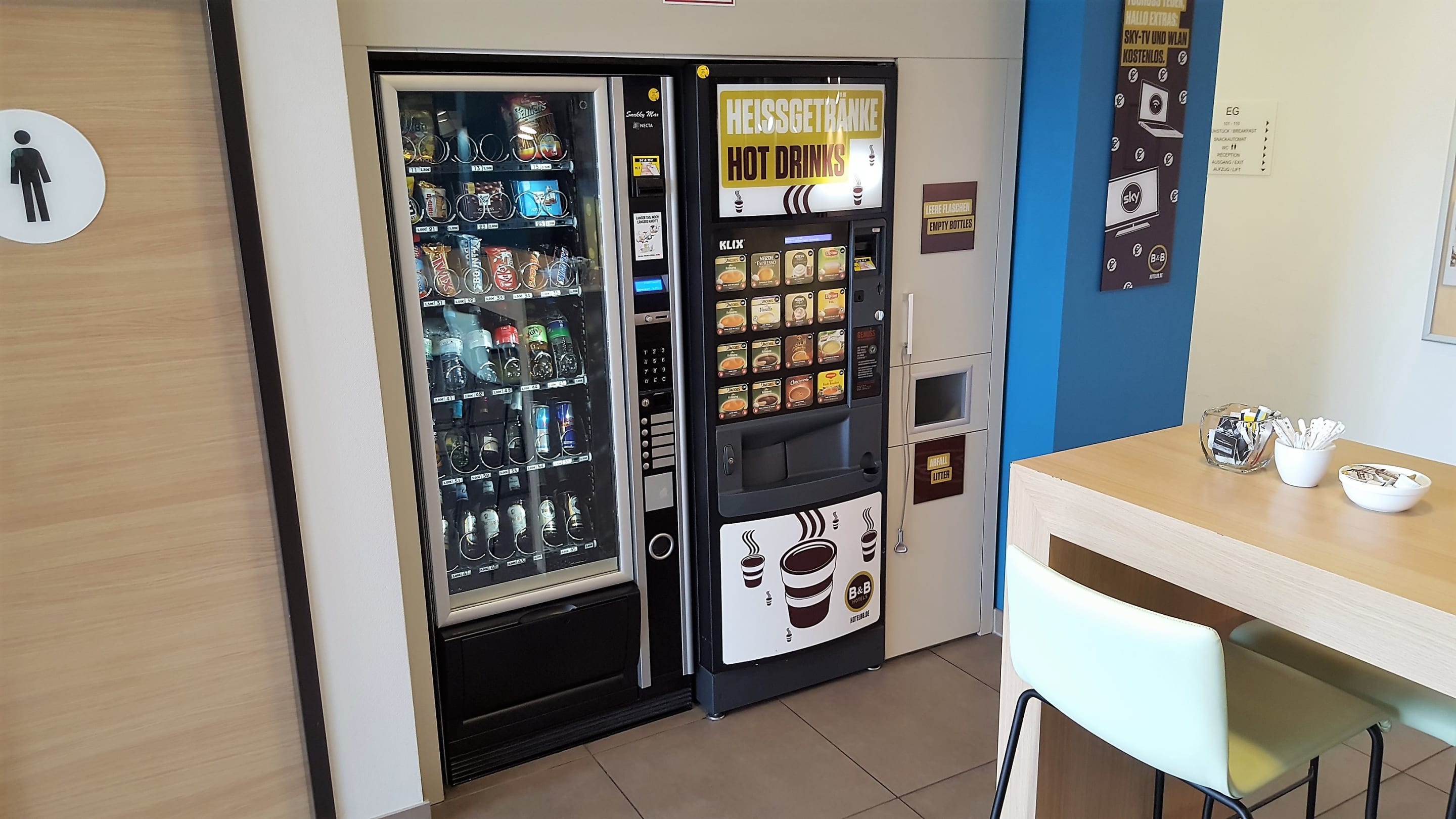 Es gibt zwei Automaten mit leckeren Sachen.