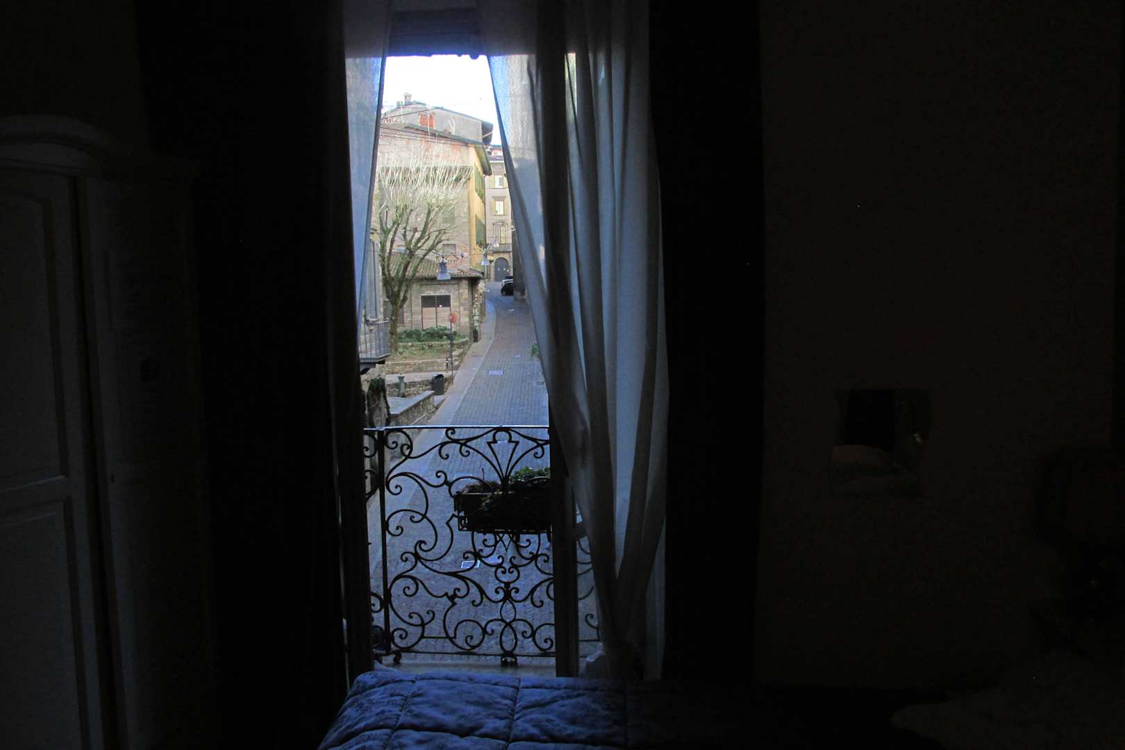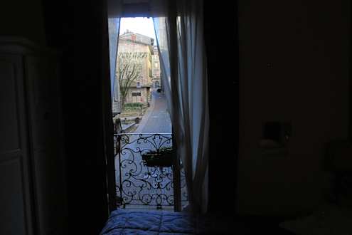 Widok z okna na ciasne uliczki Starówki