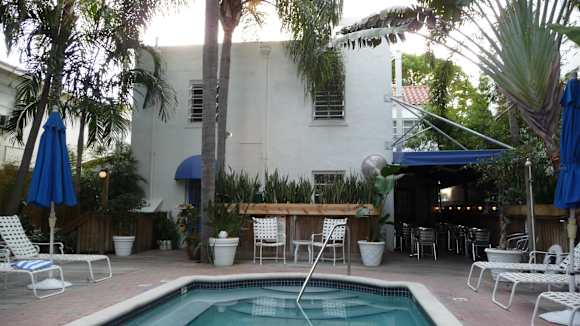 Pool und Haupthaus vom Garten
