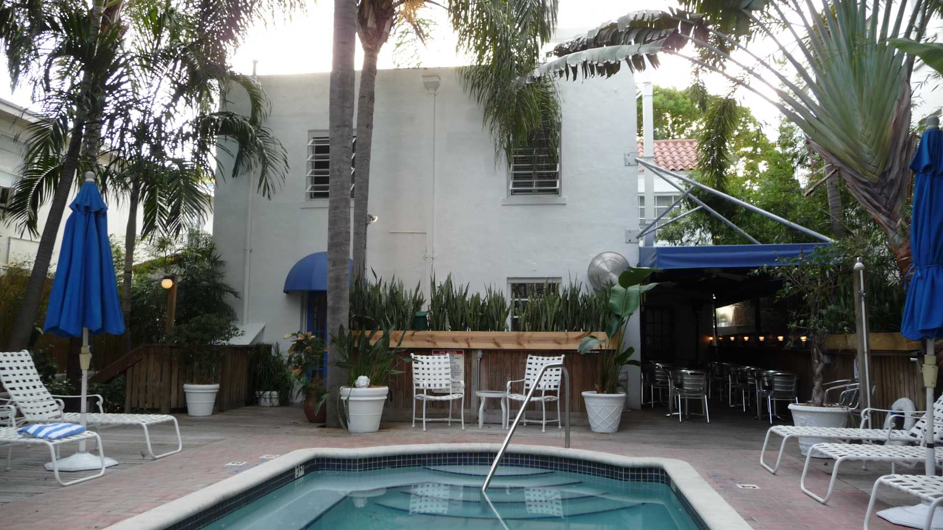 Pool und Haupthaus vom Garten