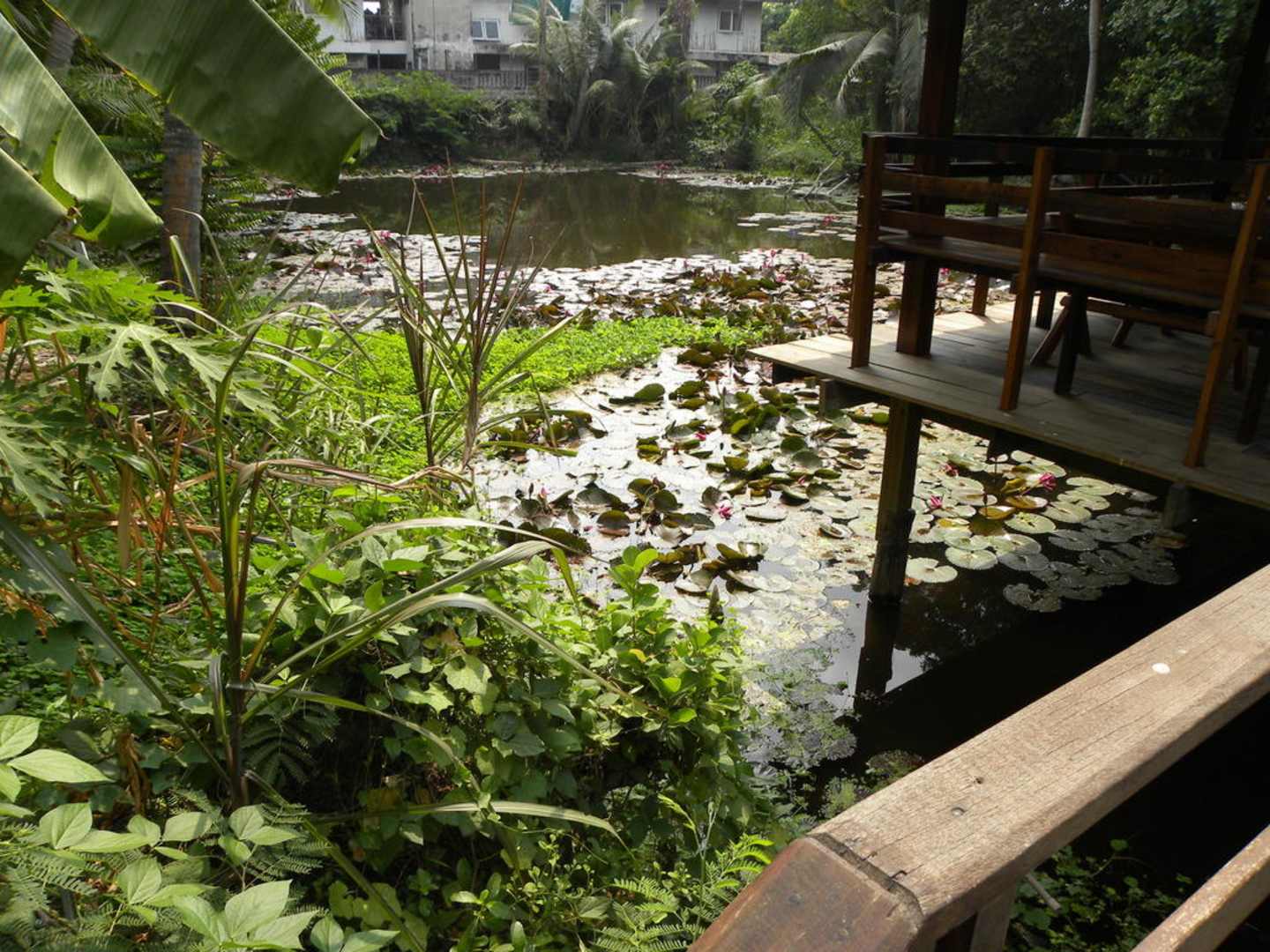 Lotusteich hinter dem Haus