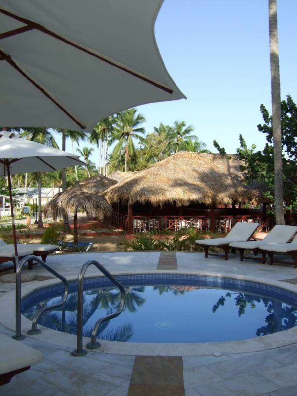 Jacuzzi und im Hintergrund das Strandrestaurant