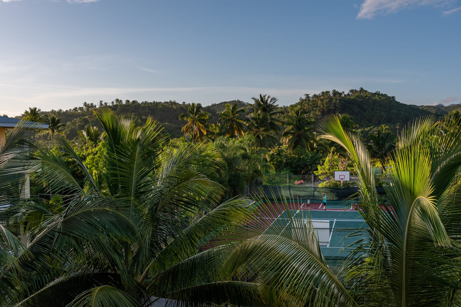 Blick auf den Tennisplatz von unserer Villa aus. Schön in die Landschaft eingebettet.