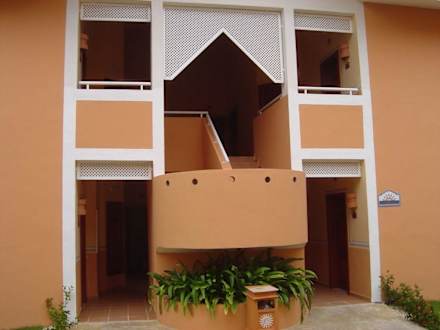 Zu sehen ist eine Aussenaufnahme des Hotels " Bahia Principe Punta Cana" 07/2005 hier: Blick auf die " Golden Club" Villen, die direkt am Strand liegen. Diese sind nur 2 Stöckig und verfügen über Zusatzleistungen.