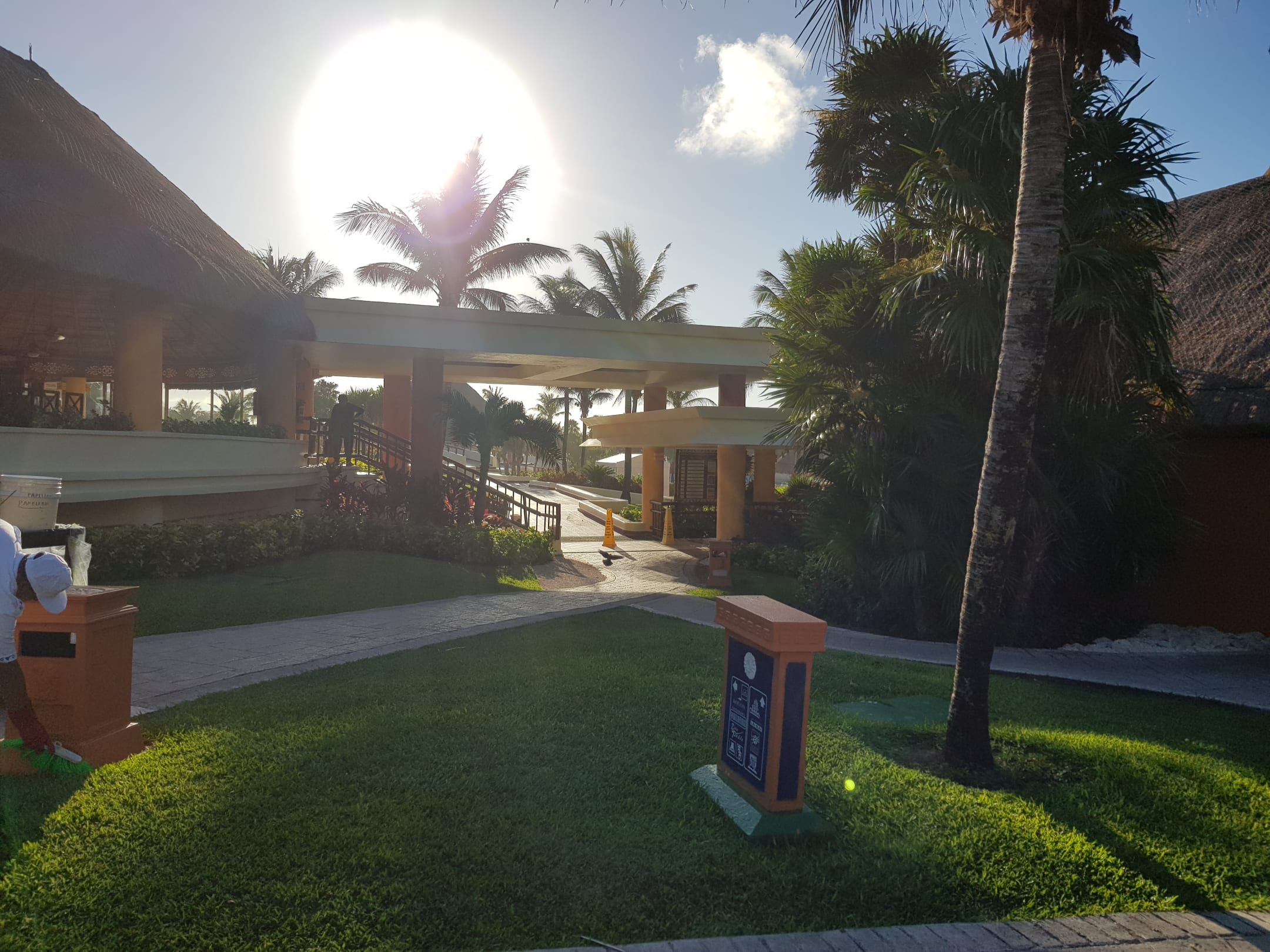 Durchgang zwischen (noch) Lobby und Bühnensaal. (Von Links nach Rechts) Von Standpunkt, an den das Bild geschossen wurde, Richtung Sonne, geht es zur Poolanlage oder auch zum Strand.