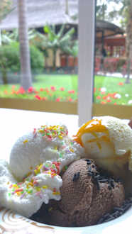Täglich wechselnde Eissorten mit Toppings