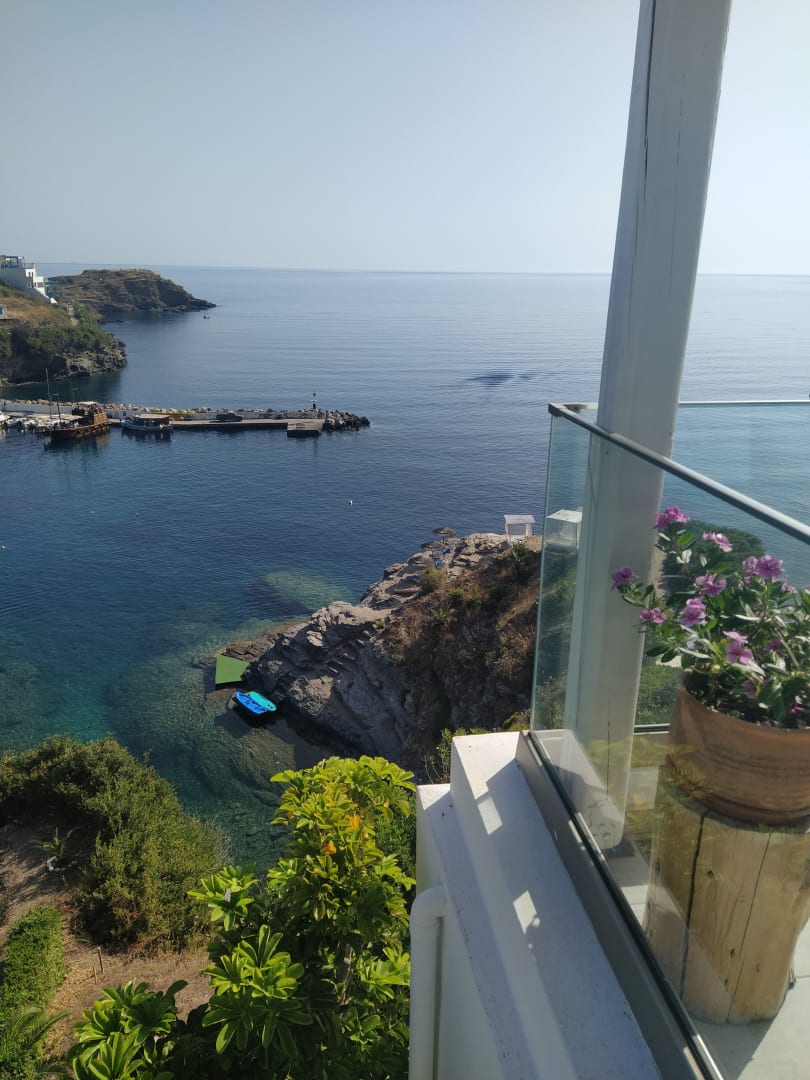 Blick auf den Felsen mit den Sonnenschirmen!