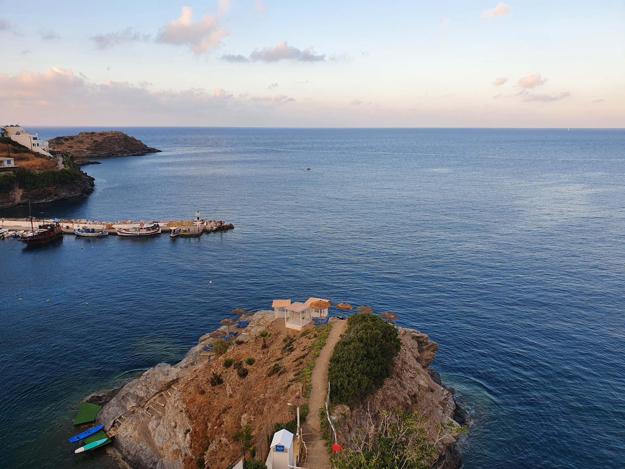 Ausblick auf den Felsen mit Strandliegen und Zugang zum Meer