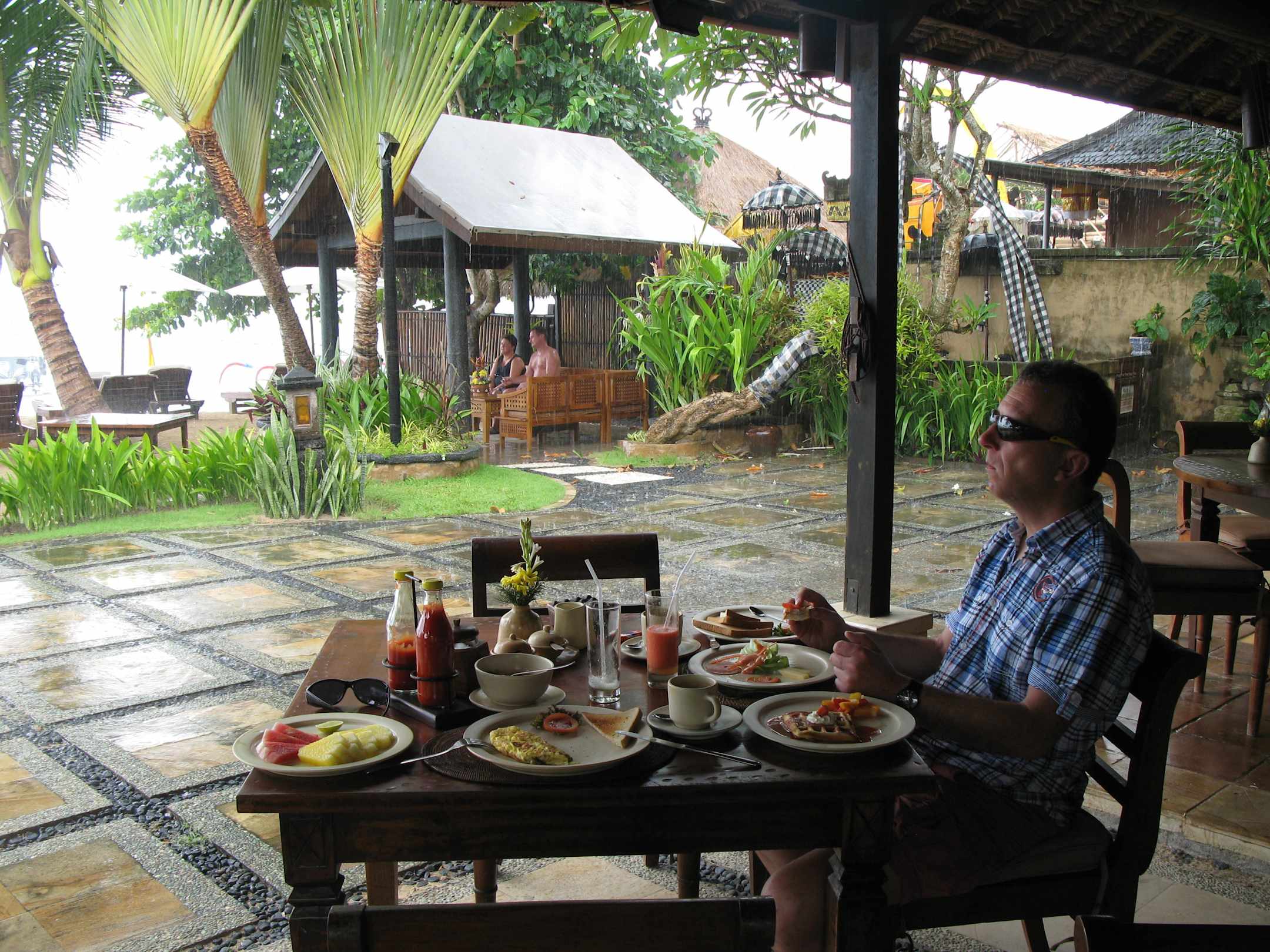 Beim Frühstück mit Blick zum Strand