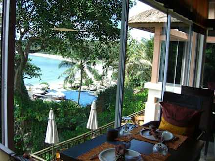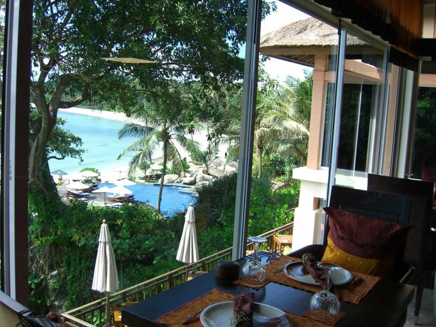Restaurant mit Blick auf Meer und Pool