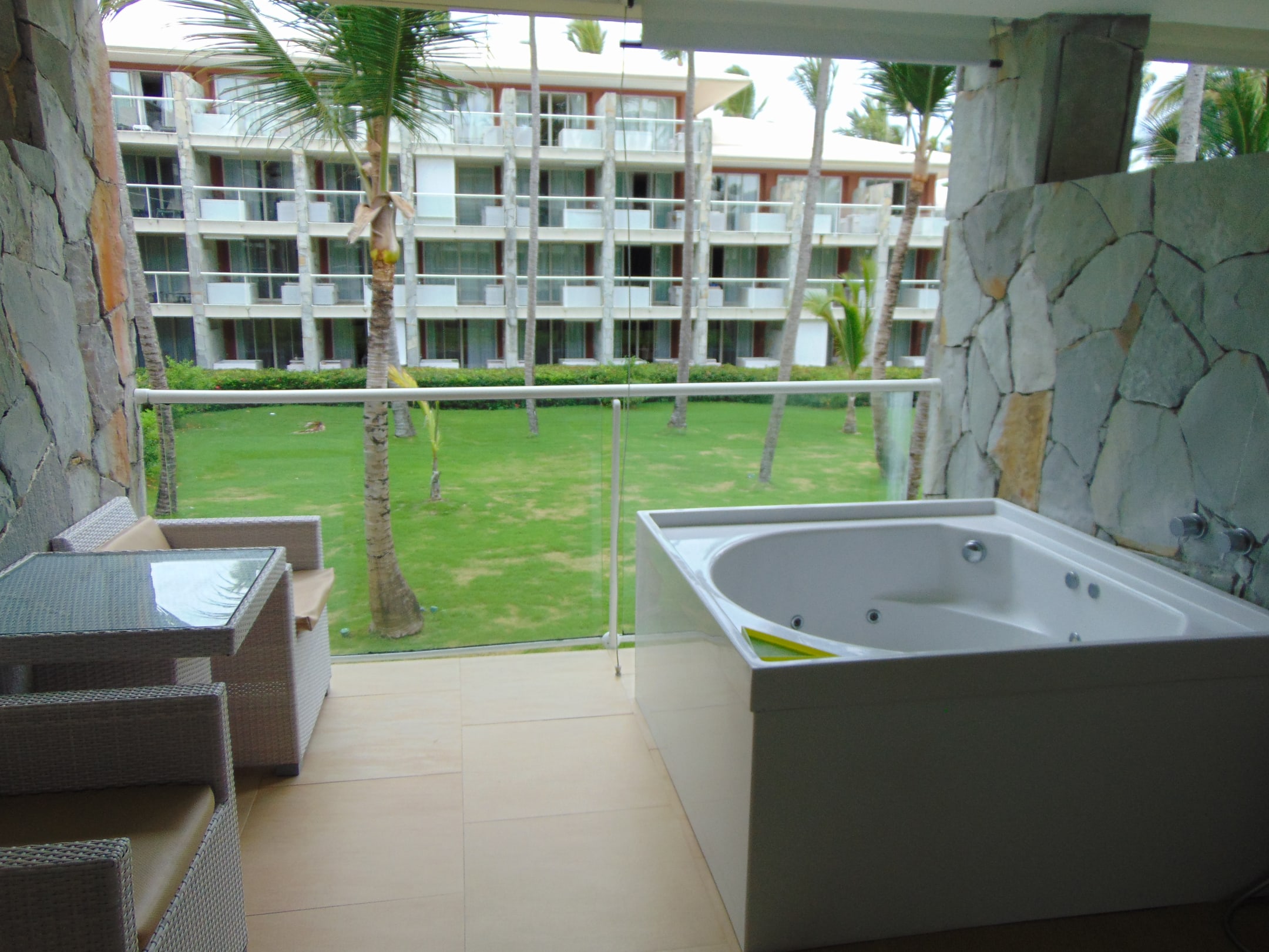 Balkon mit Whirlpool und Sitzgruppe