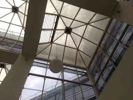 Widok brudnych okien w głównym holu