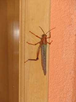 Eine Riesen-Heuschrecke an der Zimmertür