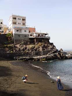 Schwarzer Strandabschnitt unweit des Hotels