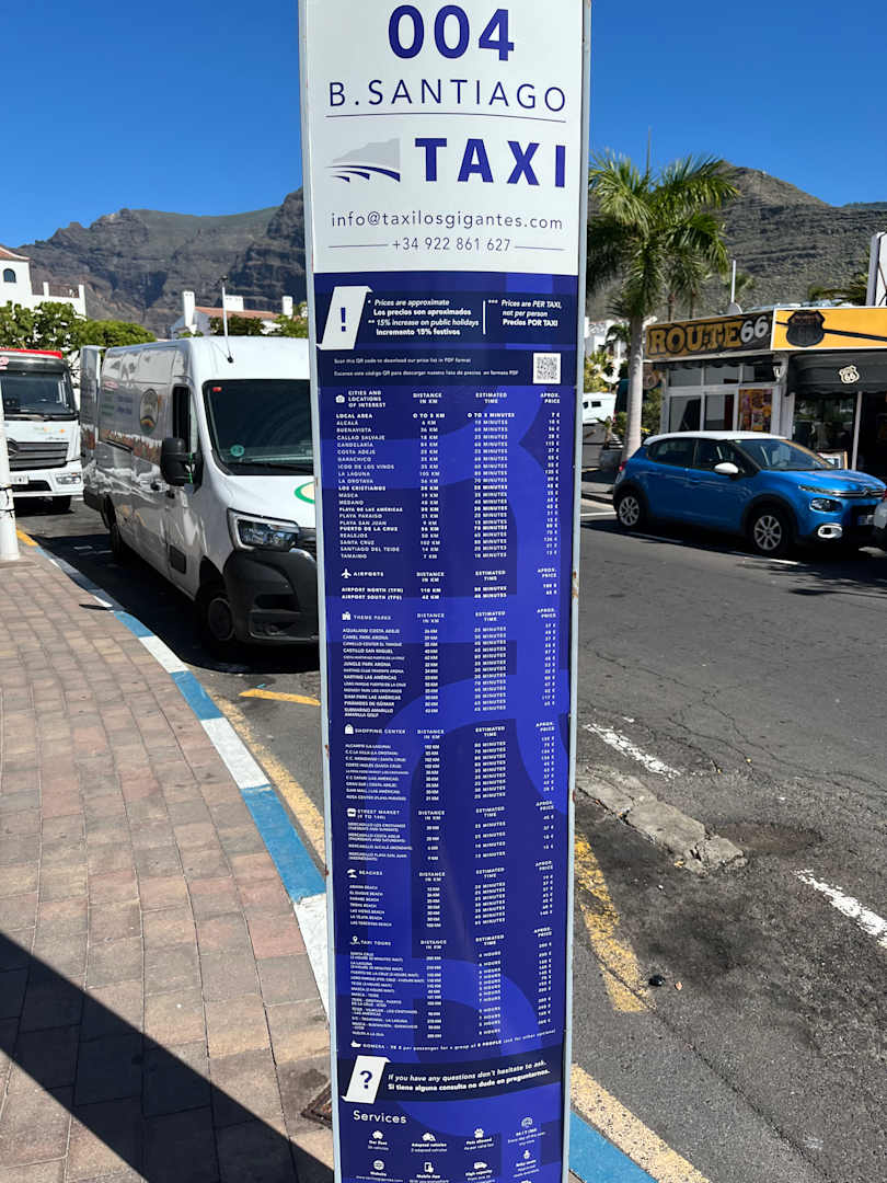 Taxistand vor der Tür mit Preisangaben