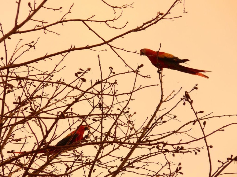 Perroquetsleurs cris contribuent à donner à l\'ouie cette impression d\'être sous les tropiques qui n\'est pas fausse quand on sort du rêve