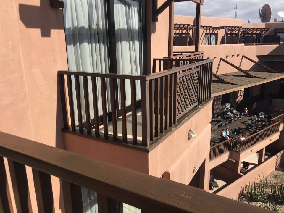 Balkon am 2. Zimmer. Unten ist die Bar zu sehen
