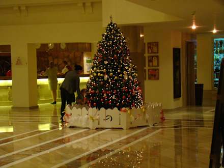 ...geschmückter Weihnachtsbaum im Foyer der Lobby
