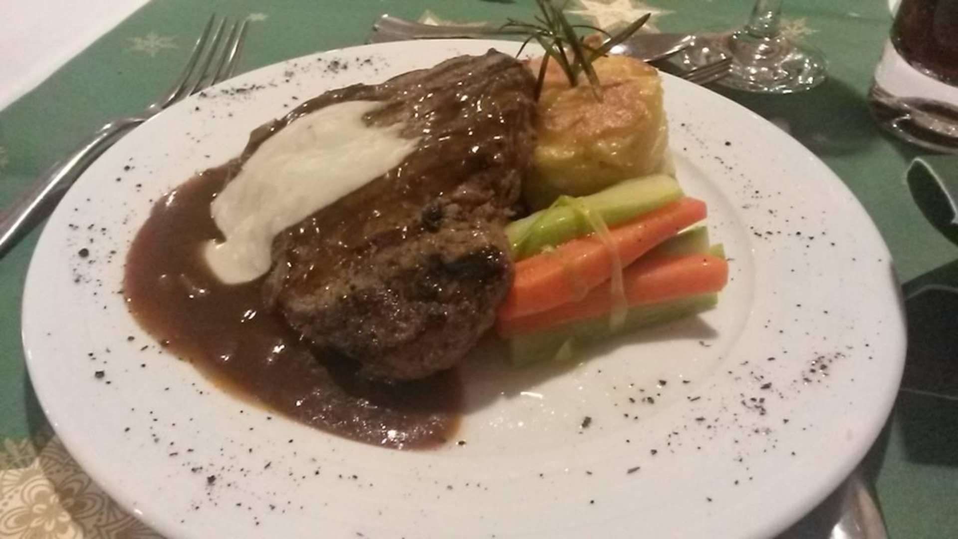 war lecker...aber leider erst nach 23 Uhr serviert worden :-(, somit sehr sehr schwer im Magen