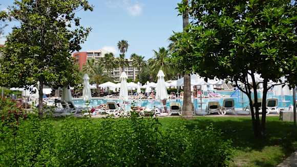 Pool inmitten der Gartenanlage