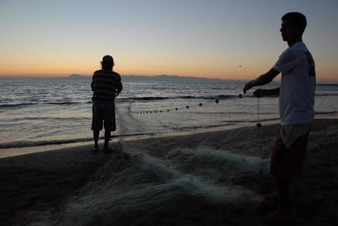 Strandfischer in der Dämmerung