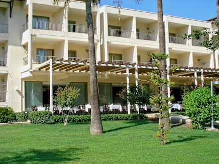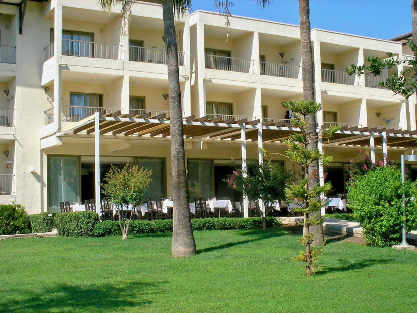 Außenterrasse mit Haus 1unten die Außenterrasse des Hauptrestaurants und darüber einige Zimmer des Hauses 1
