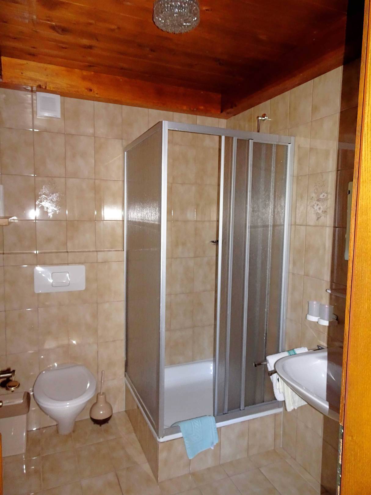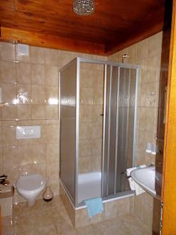 Bad mit Dusche, angenehm groß