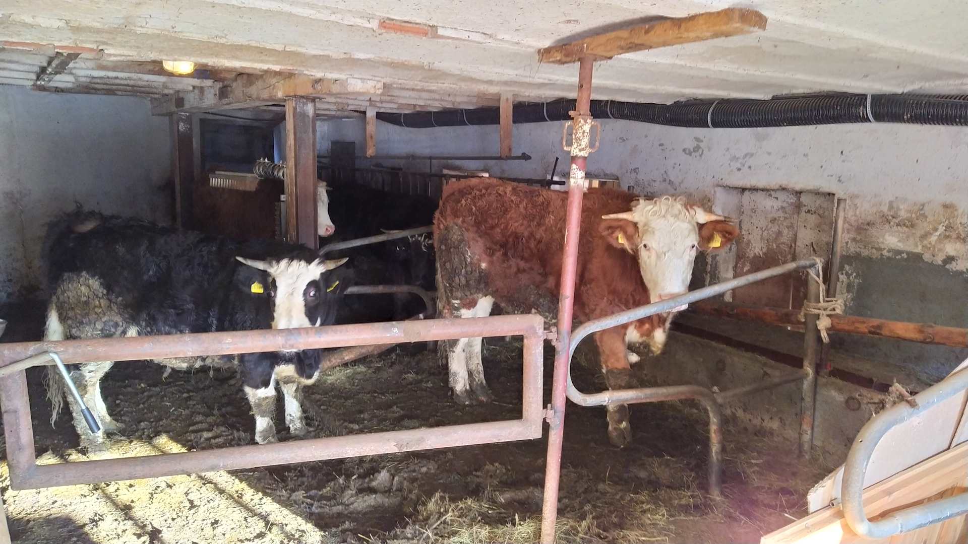 Kühe im Winter im Stall, aber mit Hörnern, gibt es nur bei Bio Haltung