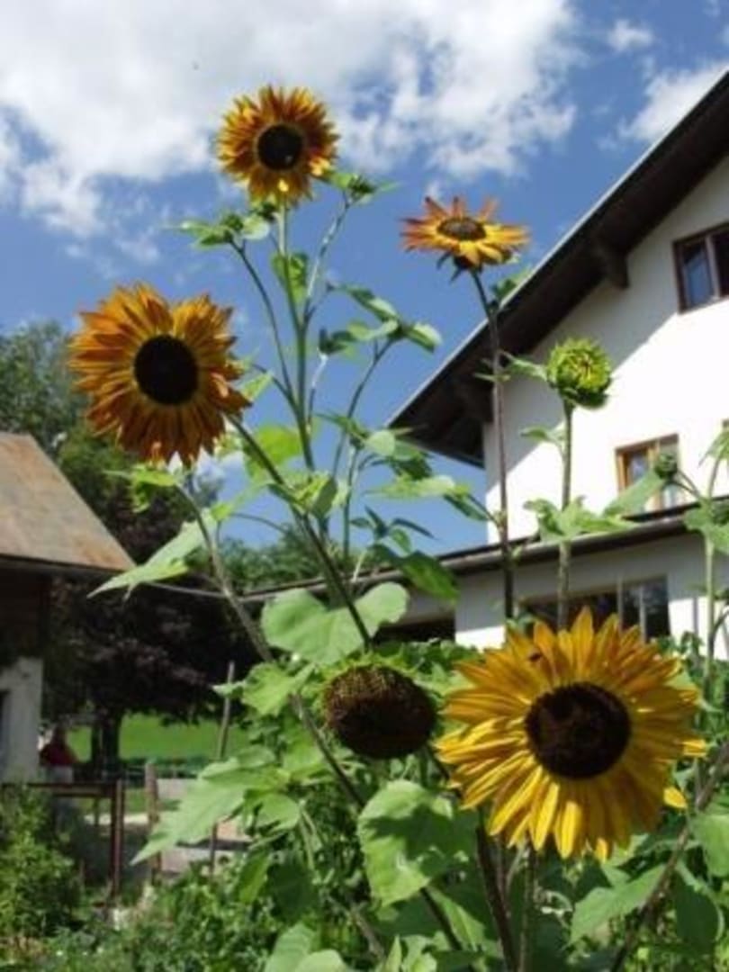 Haus und Sonnenblumen Bauernhof Lechnerbauer